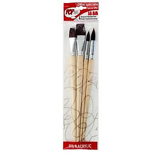 Pochette 4 Pinceaux Manches Longs Assortis Polyamide Dore