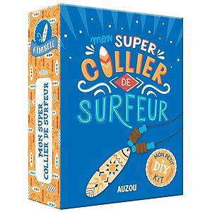 Mon super collier de surfeur - Avec des perles, 3 modèles possibles, un cordon noir style cuir et 2 planches de bois en forme de surf à colorier