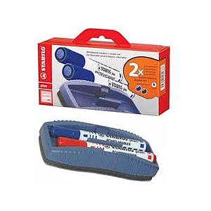 Marqueur pour Tableau + Effaceur sec - Rouge + Bleu