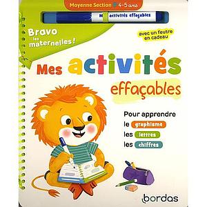 Mes activités effaçables Moyenne section - Pour apprendre le graphisme, les lettres, les chiffres. Avec un feutre