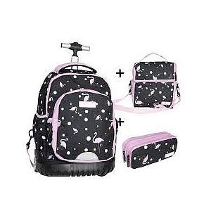 Pack Cartable à roulettes Algo 3 pièces Flamingo