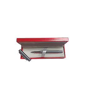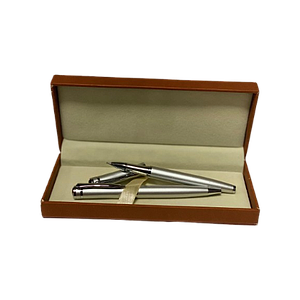 Stylo bille, métal brossé, recharge bleue pointe moyenne, Coffret cadeau