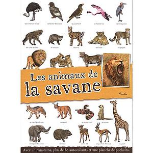 Les animaux de la savane - Avec un panorama, plus de 80 autocollants et une planche de pochoirs