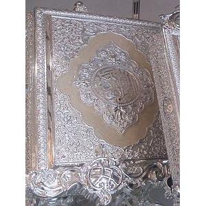 علبة القرآن الكريم فضية عاج مرصعة بالاحجار بحمالة صغيرة